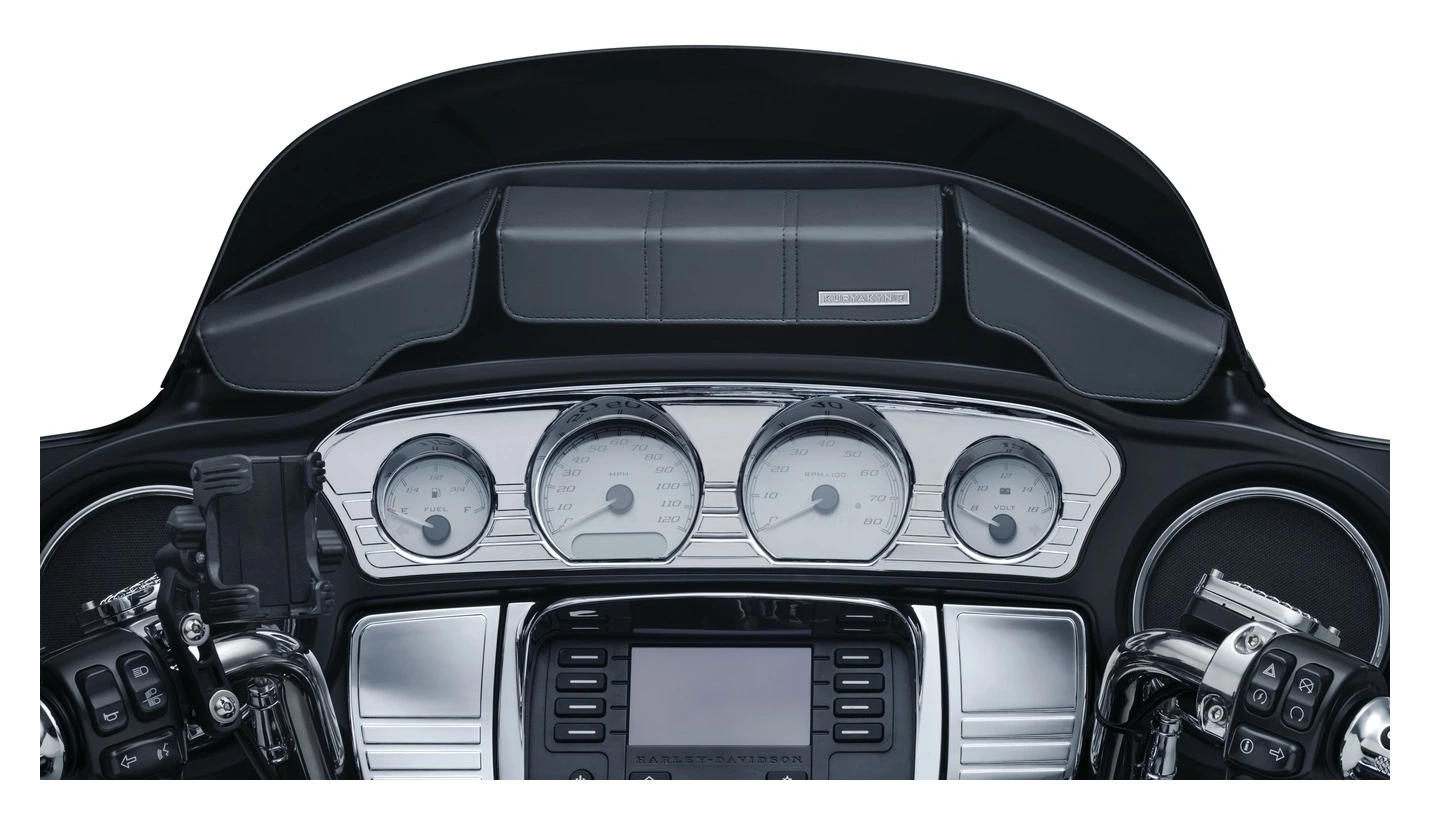 Keep the small essential items at your fingertips with this structurally formed fairing bag that hugs the contours of the Batwing fairing and windscreen. Specifically designed for maximum storage with full access to the vent open/close button to allow uninterrupted airflow.