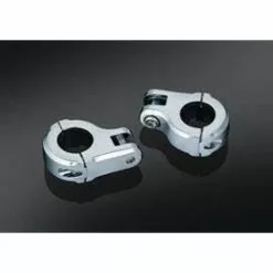 The fasteners securing the clamps to the engine guard face inward, providing a clean look. Universal fit 1 1/4″ diameter clamps for easy installation on HD, Victory, Indian, and most metric cruiser models.