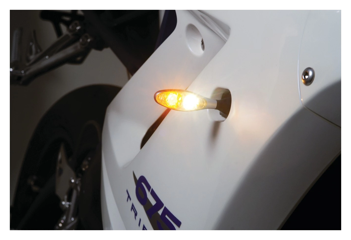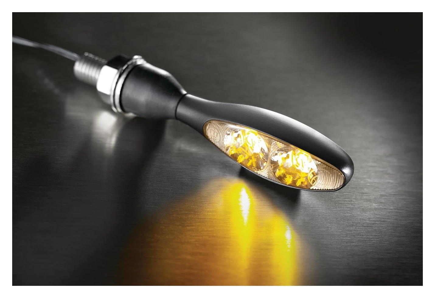 Stylish, functional and sensationally bright! The Kuryakyn by Kellermann Micro 1000 collection features streamlined oval-shaped metal housings with a flexible rubber base to absorb impact and help prevent prolonged vibration damage.