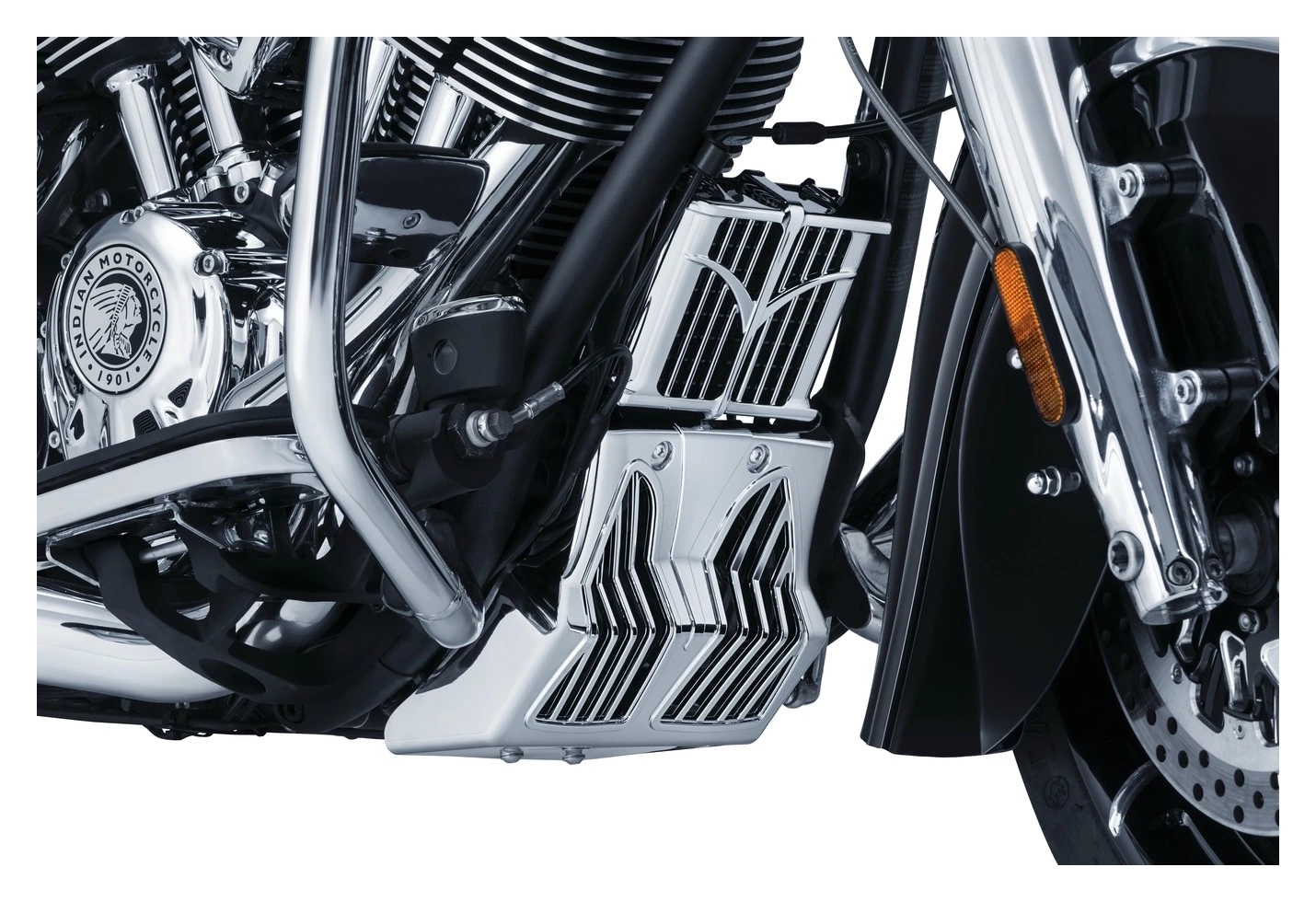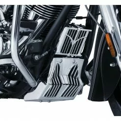 Clean up the lower front end of the frame by covering the voltage regulator and exposed wiring. Made from durable high-impact injection-molded ABS and includes steel mounting bracket for easy bolt-on installation.