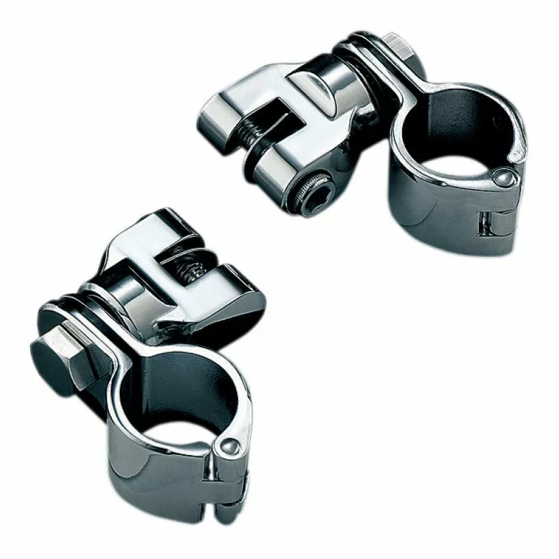 Use Kuryakyn’s Magnum quick clamps and clevis mounts for Harley style male-mount footpeg installation. Available with 1 1/4″ or 1 1/2″ diameter clamps that make these ideal for use on engine guards.