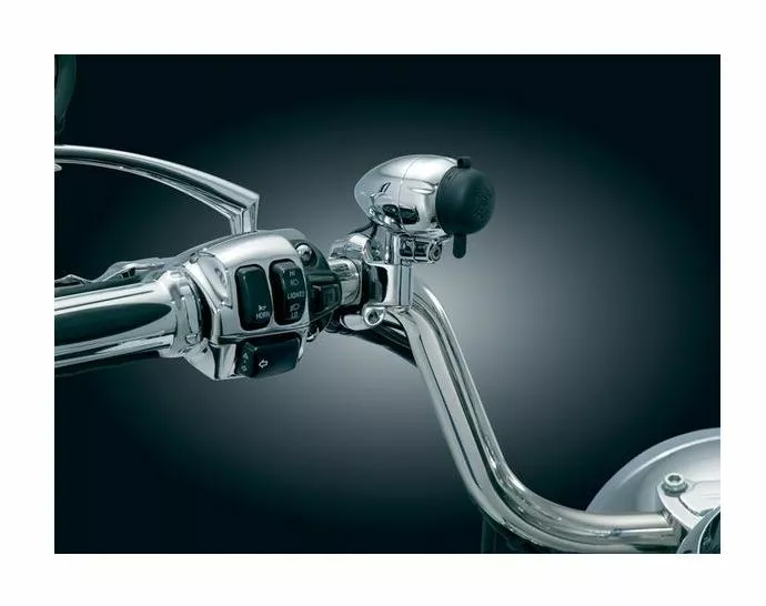 Perfect for plugging in accessories like cellphones, iPod, GPS, air pump, etc. Dressed up like a silver bullet light housing for a sleek look. Includes everything needed to connect directly to a battery or accessory wiring harness. Mount it above your handlebars or check for tank clearance & mount it below. Available with handlebar clamps for 1″ or 1 1/4″ diameter handlebars.