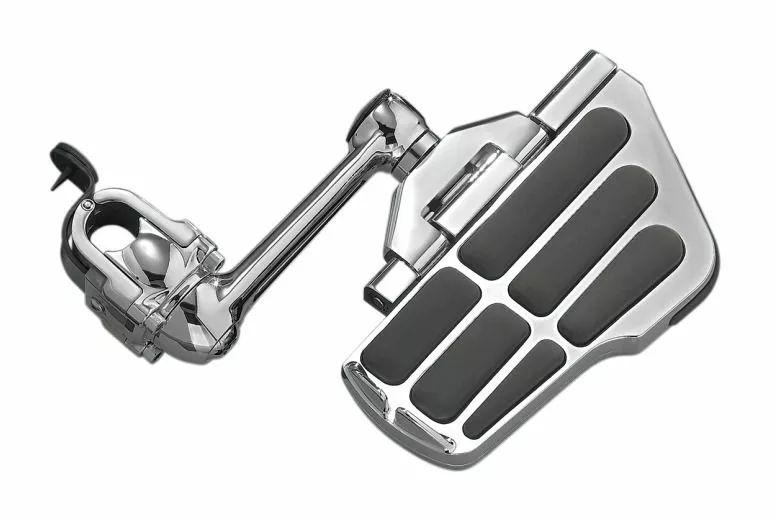 Ergonomically designed for maximum driver comfort, these mounts have an unbelievable range of adjustment for the tall, short or in-between rider. The articulated mounting bracket is made of highly polished stainless steel for extreme strength, great looks and simple installation. The 6″ long chrome swingarm has an ingenious locking mechanism and is canted at a 6º angle, which angles the pegs just the right amount for ideal comfort.