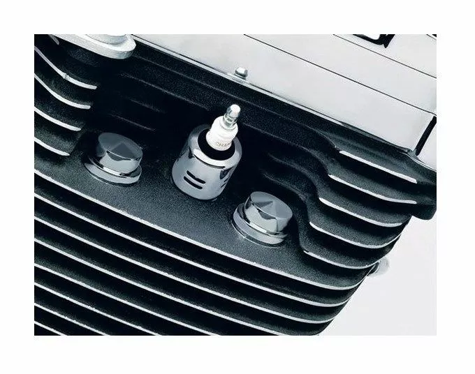 A quick way to dress up the engine with these low-profile peaked caps. They cover the headbolts that attach the head to the cylinder.