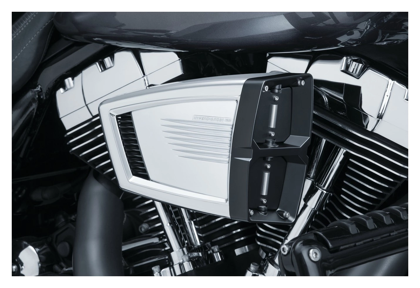 An intelligent, RPM based Electronic Servo opens and closes the ram air styled butterfly flaps, making for a unique and performance oriented air cleaner. The custom Kuryakyn-designed high-flow K&N filter delivers approximately 10% more airflow than previous models.