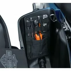 No more fumbling through that abyss of a saddlebag to find your tools, phone or whatever inevitably ends up at the bottom. Kuryakyn’s Internal Saddlebag Organizers keep small items secure and easily accessible. Mounts to the inner front panel in seconds using high-strength 3M VHB.