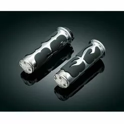 The Kuryakyn ISO grips feature a unique flamed pattern that is molded into the soft rubber pads so the feel as good as they look.