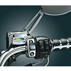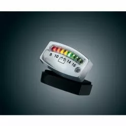 Easily determine the health of your bike’s charging system with this easily installed gauge. A green LED indicates within normal operating range of 12.5V to 14.5V. An amber LED warns you if the bike is not charging correctly. And if the reading drops below 10V or exceeds 15V, the flashing red LED alerts the rider. Its simple two-wire connection and a peel-and-stick installation lets you attach the gauge almost anywhere. It also features a daylight sensor that automatically adjusts the LED brightness.