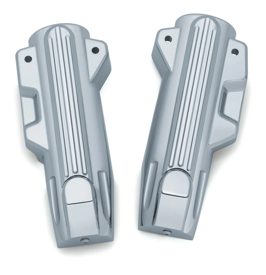 The Kuryakyn Lower Fork Covers feature durable aluminum construction and easy bolt-on installation that’ll revamp the front end in no time.