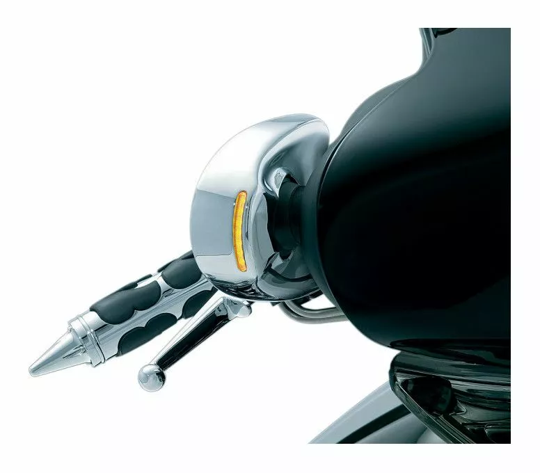 Why keep your mirrors camouflaged within your fairing? Add these Mirror Caps & highlight those great lines by adding a sparkle of chrome in an unexpected location. Available with built-in amber auxiliary turn signals using simple plug-in connections to add that extra visibility to other drivers on the road.