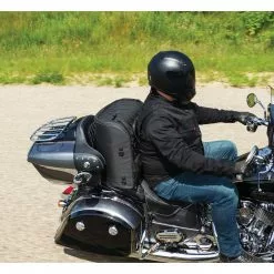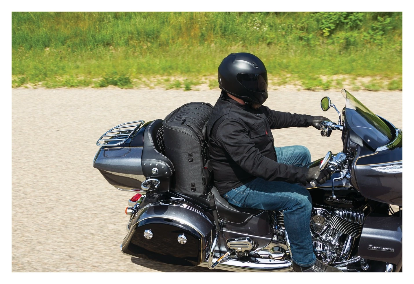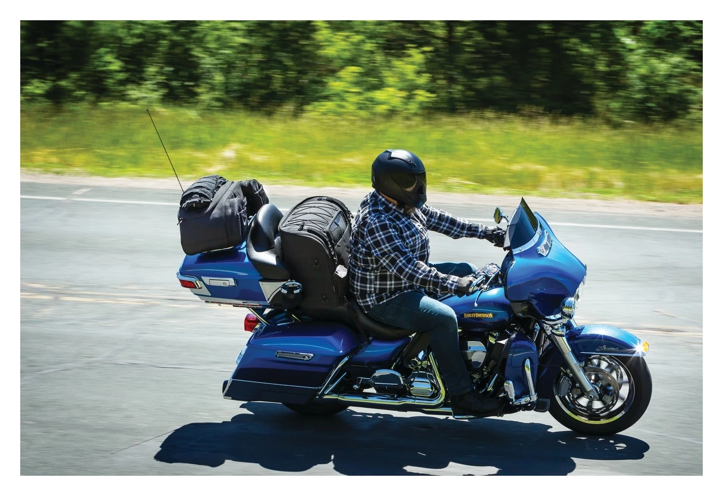 Set your sights on the ultimate solo touring adventure with the Wanderer seat bag. Fits like a glove on the passenger seat of most bikes with tour trunks, and the cavernous main compartment offers organized packing options with its unique integrated mesh dividers. What’s more, this do-it-all bag doubles as a backrest, allowing riders to kick back in the saddle while racking up the miles.