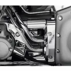 Blanket the area between the cam cover and transmission with this cover. Stock chrome oil lines exit through the cover for a high-tech appearance. Installs easily so you are back on the road in no time at all.