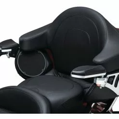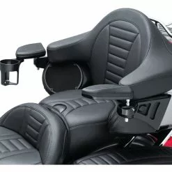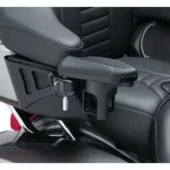 Keep your passenger comfortable with this versatile armrest kit from Kuryakyn. Armrests can be adjusted vertically and rotated out of the way when mounting and dismounting. They can also be removed with a simple push of a button when not needed. Mounting bracket conveniently mounts between the Tour-Pak and speaker housing. Includes one cup holder, which can be installed on the right or left side. Additional Kuryakyn Drink Holder is available separately.