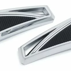 A modern, aggressive design that combines quality aluminum with premium EPDM rubber pads to create a solid foundation for stability, traction and comfort. Features a subtle pass-through design, sharp, sculpted lines and accepts model-specific Splined Adapters for fitment on a wide variety of Indian, H-D, Victory and metric cruisers.