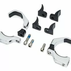 Kuryakyn Fork Mounts ease the process of installing fork-mounted turn signals. The unique clamping system adjusts to fit 39mm up to 49mm fork tubes and accepts any aftermarket turn signals using an M8-1.25 threaded stud.