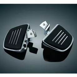 All the great benefits of a floorboard in a smaller, more affordable package. The 3/4″ drop-style mount, with interlocking splines, provides more legroom with slight angle adjustability for added comfort. Maintain stock-like ground clearance for optimum control. 5 1/2″ long x 4″ wide. Sold in pairs.