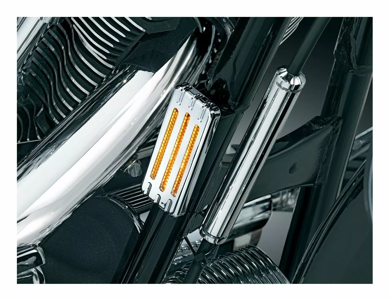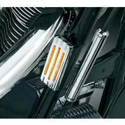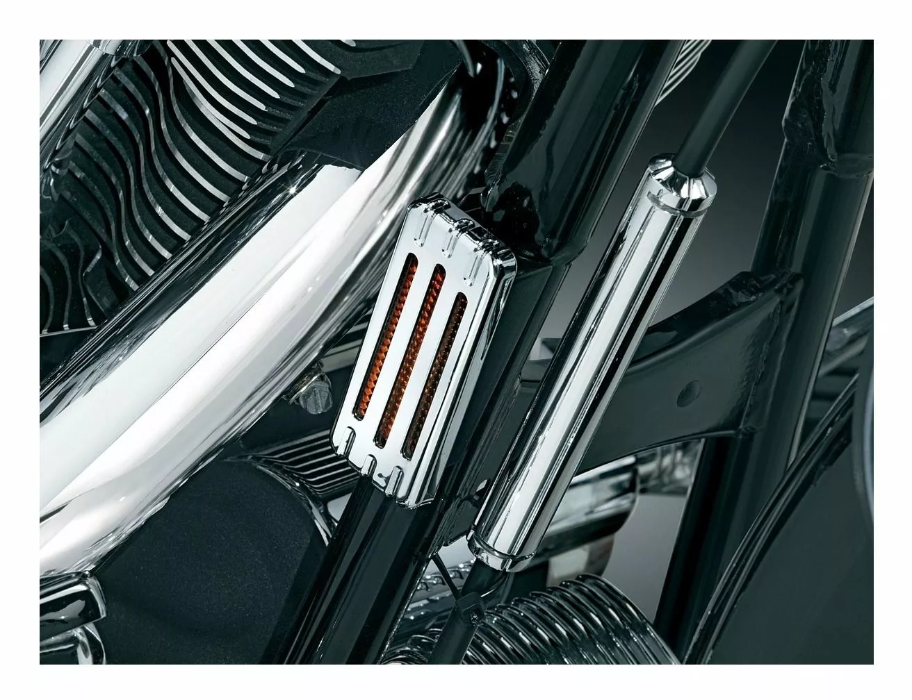 Hook up those unsightly front and rear reflectors on your bike with our louvered chrome covers. Maintains visibility, and also adds a stylized cover in traditional Kuryakyn chrome.