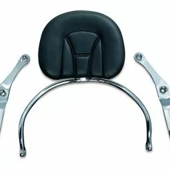 Fully adjustable front to rear and up-down to get the exact position you desire all with the push of a button. Quick detach – simply rock it forward to release for easy storage in your tour trunk – and low profile for maximum passenger leg room. The included large passenger storage pouch is removable to take those necessity items with you (shoulder strap also included). Made from top quality materials featuring chrome and stainless steel throughout.