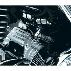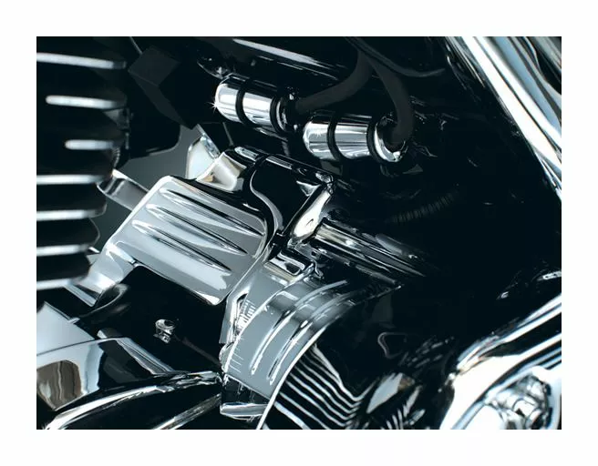 When combined with the Kuryakyn Starter Cover, their die-cast, chrome plated Starter Mount Cover completely dresses up the exposed starter on 2009-up Touring Models. These classy die-cast covers are a snap to install and put the finishing touch on this area.