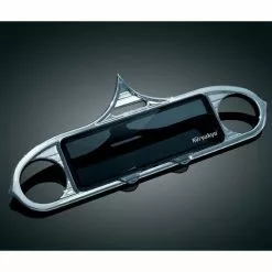 Get the over the top look without the over the top price with the chrome stereo accent from Kuryakyn. Made from lightweight ABS, this great looking chrome accent is just enough to set your bike in a class all its own. Installation is a snap with no tools or dis-assembly required.
