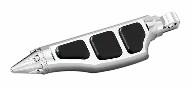 For those who ride on the wild side. Rubber pad inserts add comfort and isolate the foot from vibration. The built-in curb-feeler hits the ground before your pegs do. The Stiletto pegs are available with late model H-D male-mount ends. Matching Shift Pegs & Brake Pedals also available separately.
