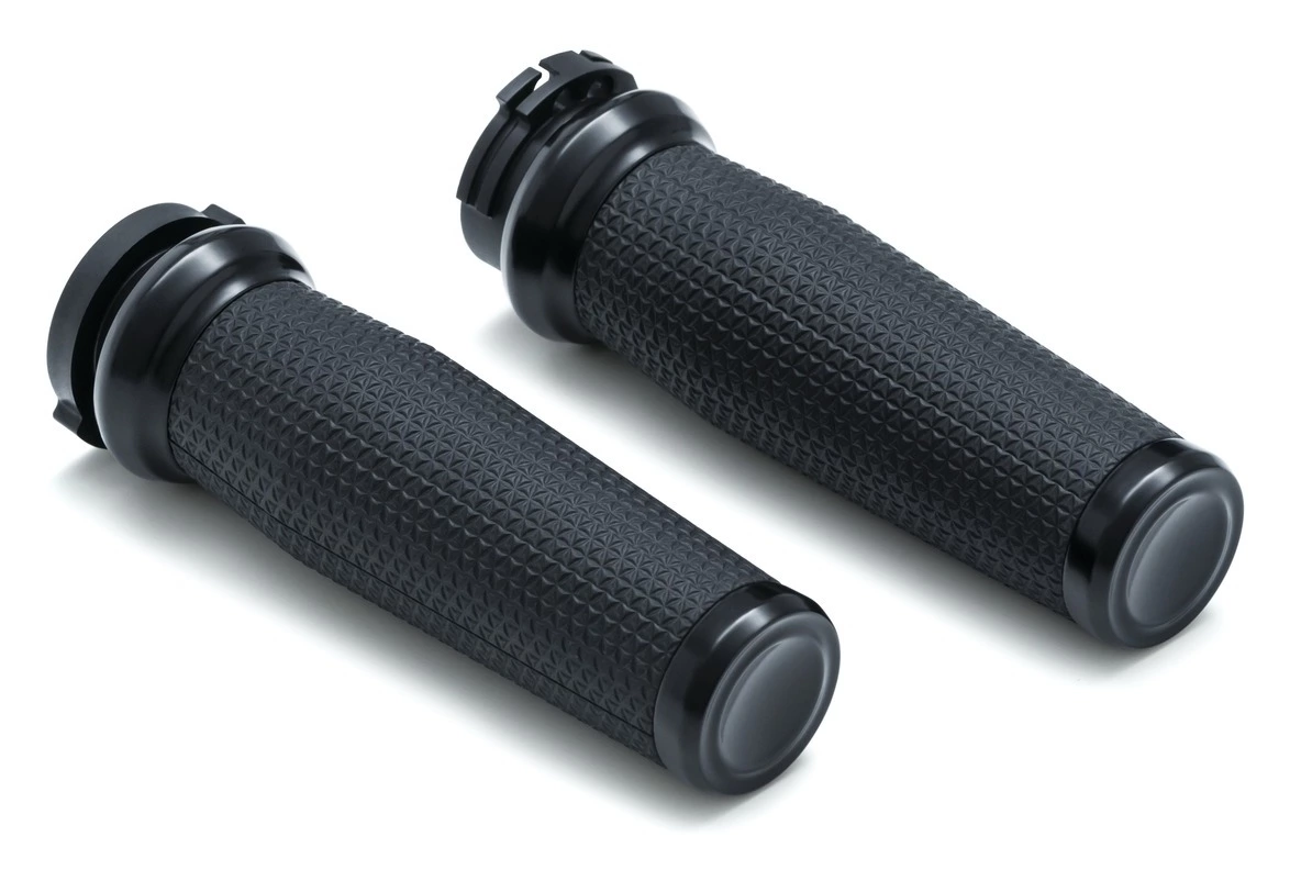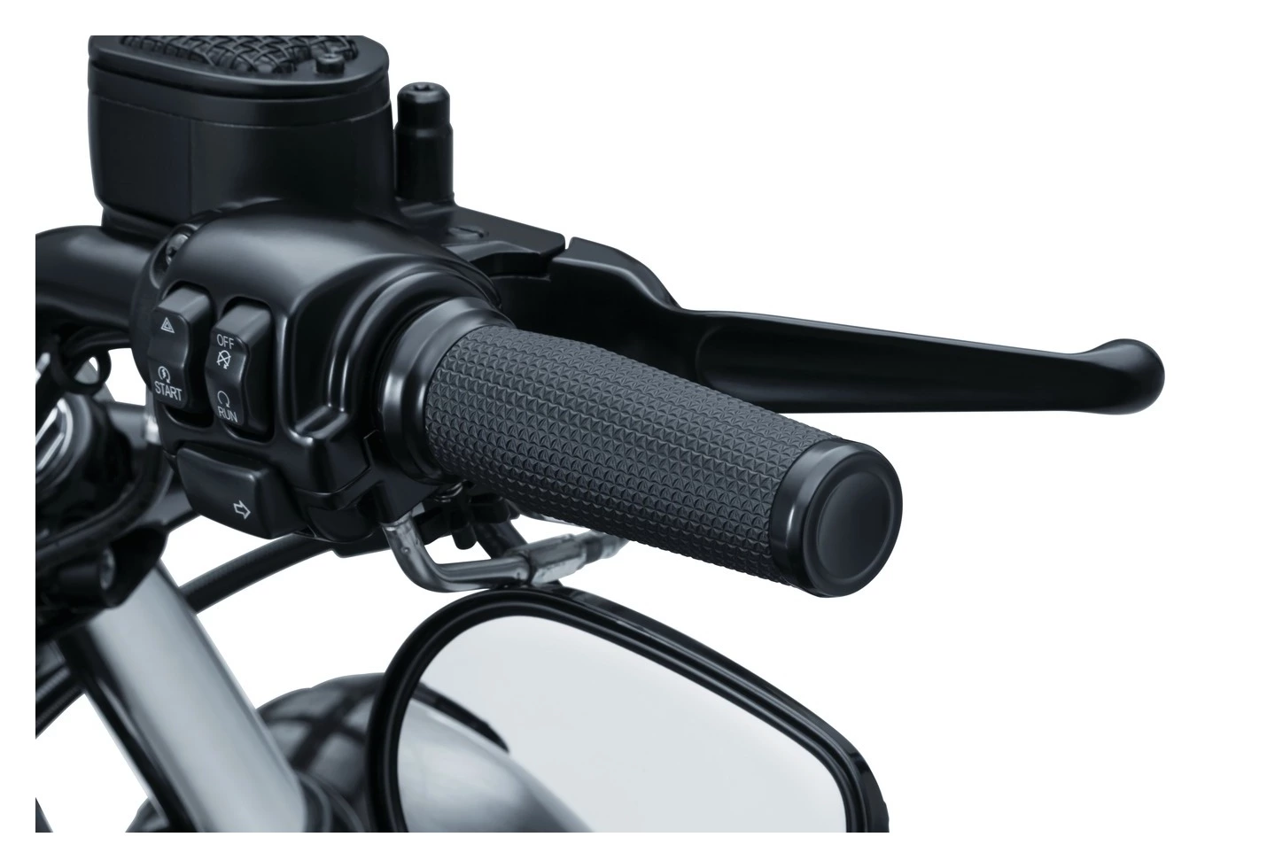 - Thin diameter with soft knurled rubber for confident control and comfort