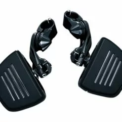 These Tour Tech cruise mounts with positive locking quick clamps offer an incredible range of adjustability. The entire assembly may be moved up or down on the engine guard, and the arm and footpeg may be further adjusted along a vertical or horizontal arc. A unique clevis permits angle adjustment of the footpeg. The heavy-duty quick clamp and sturdy offset arm ensures that the footpegs will clear fairing lowers and stay where you put them.