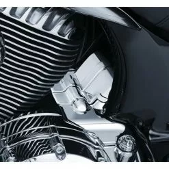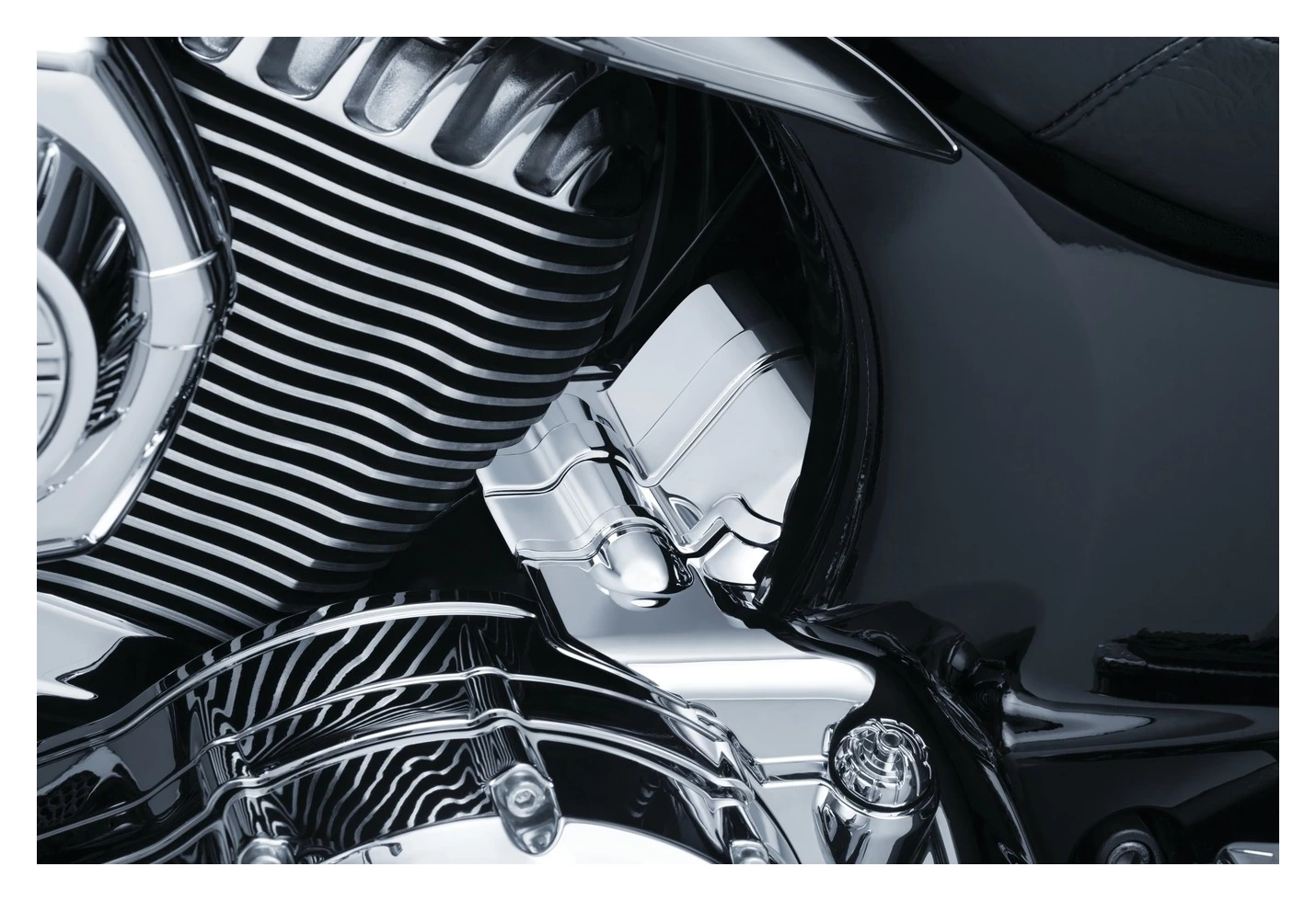 This must-have addition to the engine chrome package for Indian is precisely sculpted and contoured to completely transform the dull wrinkle black area of the transmission case behind the cylinders.