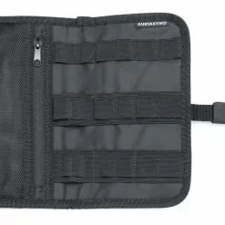 This Trunk Lid Organizer has been completely redesigned from the original version. Now, it’s better and more secure than ever! Kuryakyn ditched the original adhesive-mounted design for extra-secure lid-mounted snap tab attachments reinforced by high-strength hook-&-loop fasteners. Additional features include three separate storage pockets for optimum organization, and a a separate MOLLE-integrated tool roll/Dopp kit.
