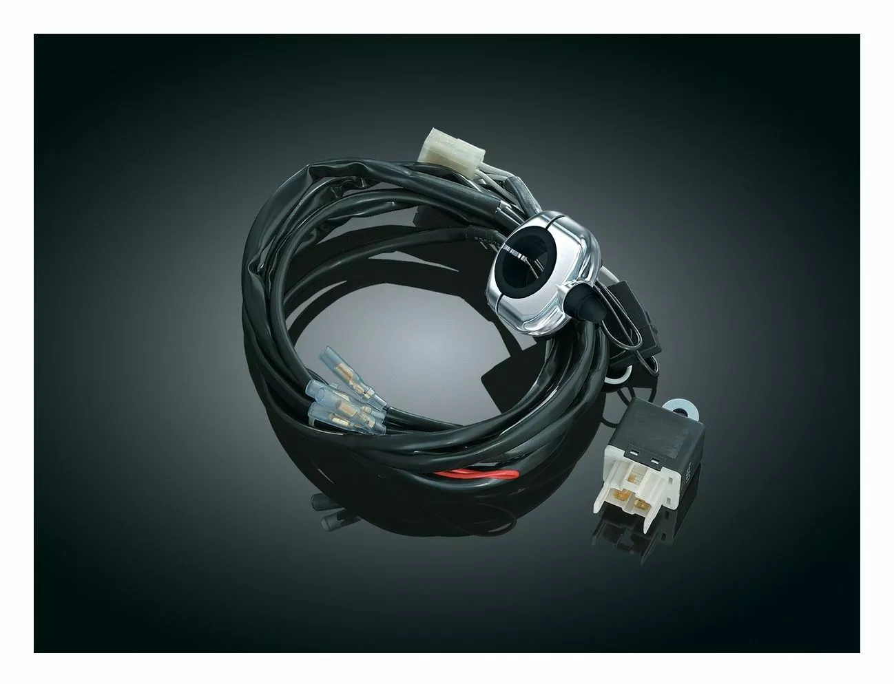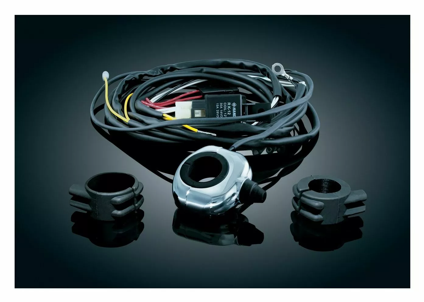Kuryakyn makes it easy to wire your new driving lights the right way. Eliminate the risk of overloading existing circuits on your bike by adding an independent fused relay circuit to power your driving lights or other accessories. Available with a super-clean handlebar mounted push-button switch, these kits make it easy to power-up your lights whenever they’re needed.
