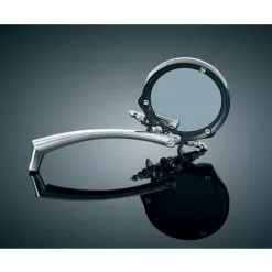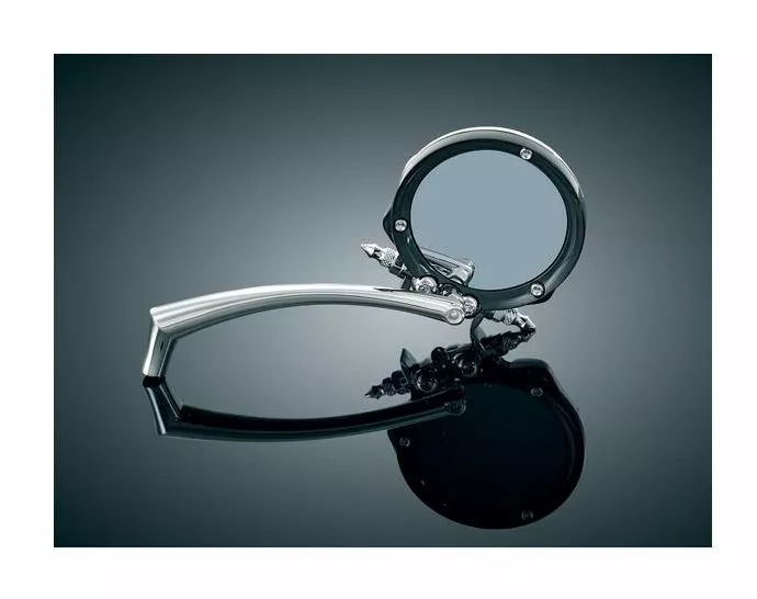 These might just be the nastiest mirrors on the road. The mirror adjustment mechanism is a swivel ball between two opposing pins that are threaded to allow quick, easy tension adjustment. The smoothly arched stem positions the center of the mirror head about 4 3/8″ above and 5 1/2″ out from the mounting point on the handlebar control. Hardware for a variety of H-D mounting applications is included.