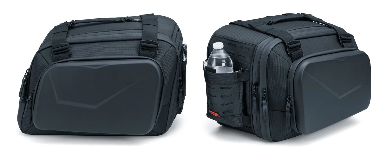 Enjoy all the extra storage space saddlebags provide, with the added benefits of updated styling and throw-over convenience to eliminate the need for hardware or bulky mounting brackets. Adjustable seat strap offers a custom fit either on top or under the passenger seat on virtually any motorcycle.